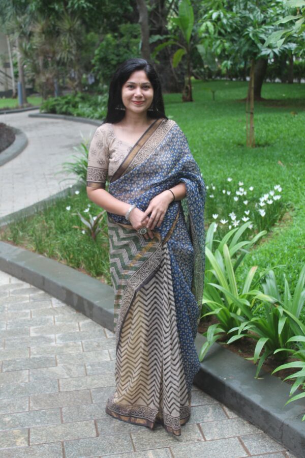 Pari Handblock Linen Saree was added to the cart.
